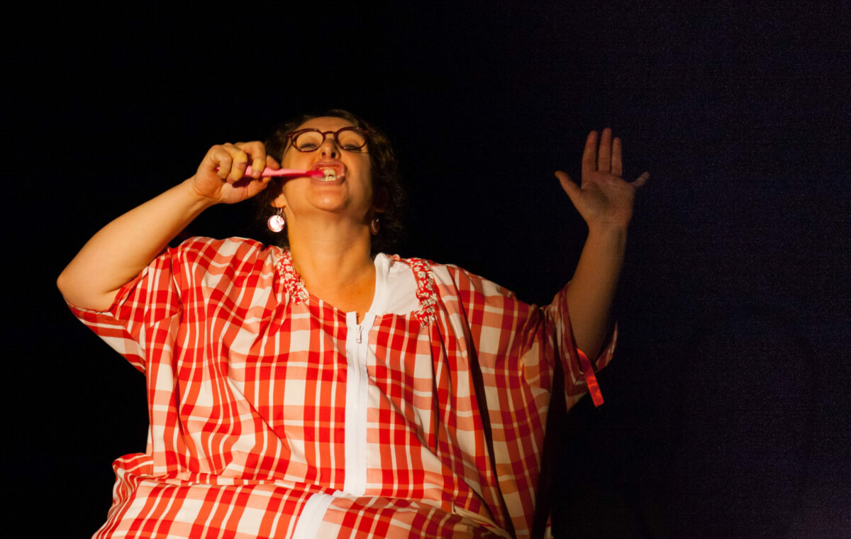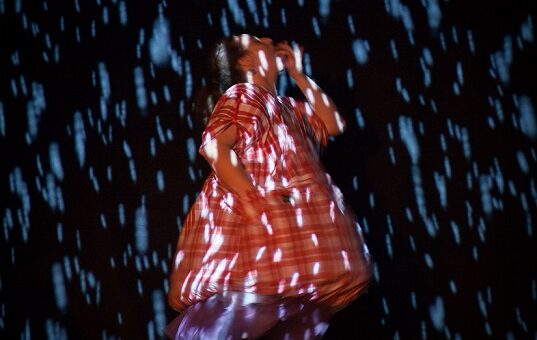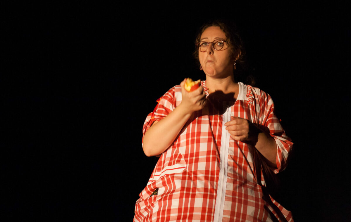 C’est ainsi que se présente Grosse Patate l’héroïne de cette histoire. Elle est en CM2. Dans sa classe, il y a Rosemarie la timide, Rémi dont l’ombre est celle d’une petite fille et Hubert qui porte des chandails échancrés et dont tout le monde est amoureux. Autour de ces quatre enfants en quête d’eux-mêmes, se déroule une mécanique théâtrale singulière. L’adulte est là lui aussi et revêt le costume de l’homme en noir que Grosse Patate rencontre dans ses rêves et qui l’aide à mieux comprendre le monde.