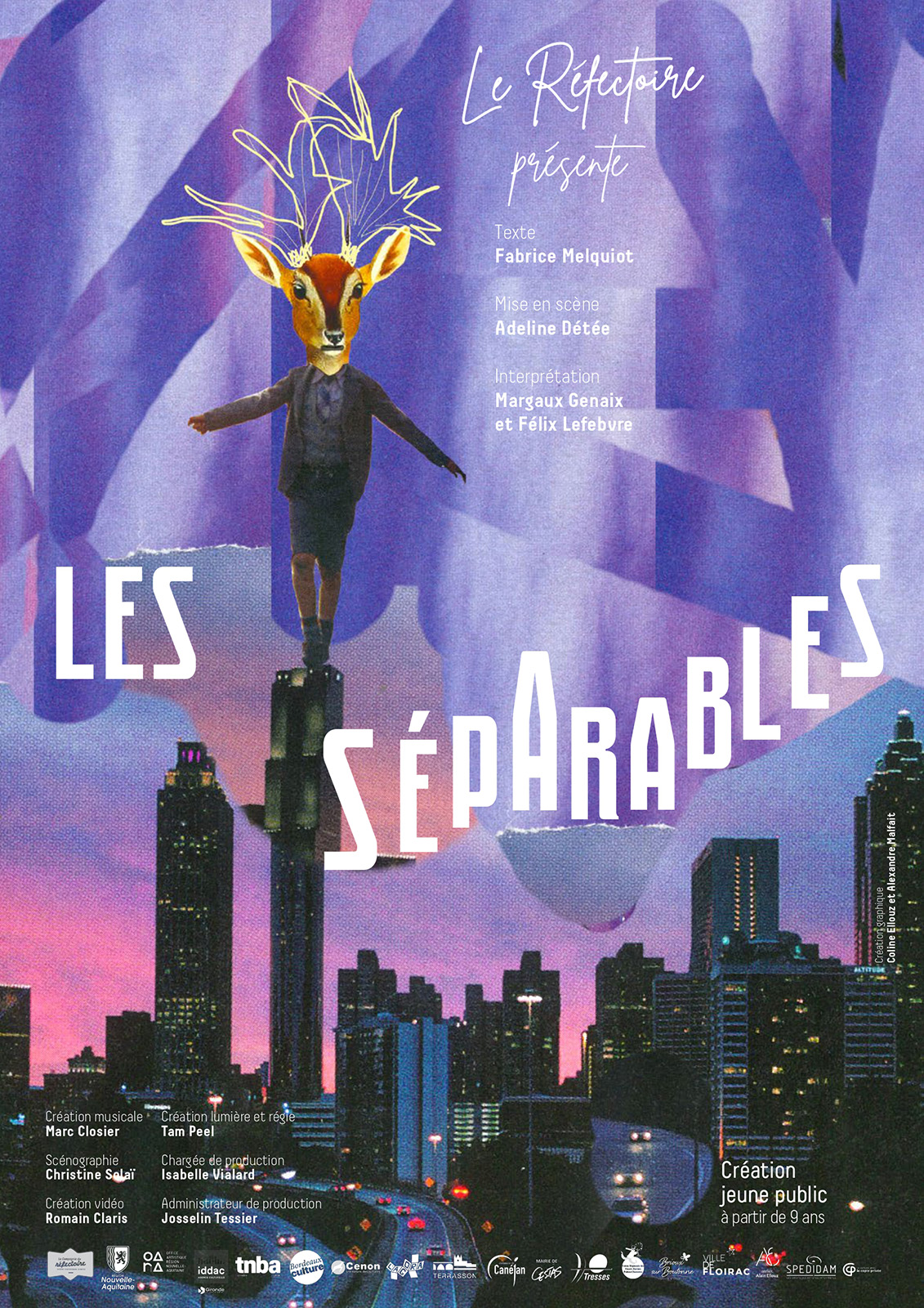 Porté par deux jeunes comédiens au plateau, dans une scénographie dépouillée qui laisse libre court à l’onirisme, le spectacle est mis en scène à la manière d’une fantasmagorie urbaine où musiques originales, vidéos picturales et corps en mouvement forment avec les mots une unité dansante et inspirante.